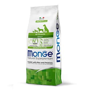 Monge Natural Superpremium All breeds Adult Monoprotein* заешко с ориз и картофи – пълноценна храна за домашни любимци за кучета в зряла възраст от всички породи.