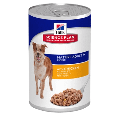 Пълноценна храна за кучета от всички породи на възраст над 7 години. Под формата на консерва.