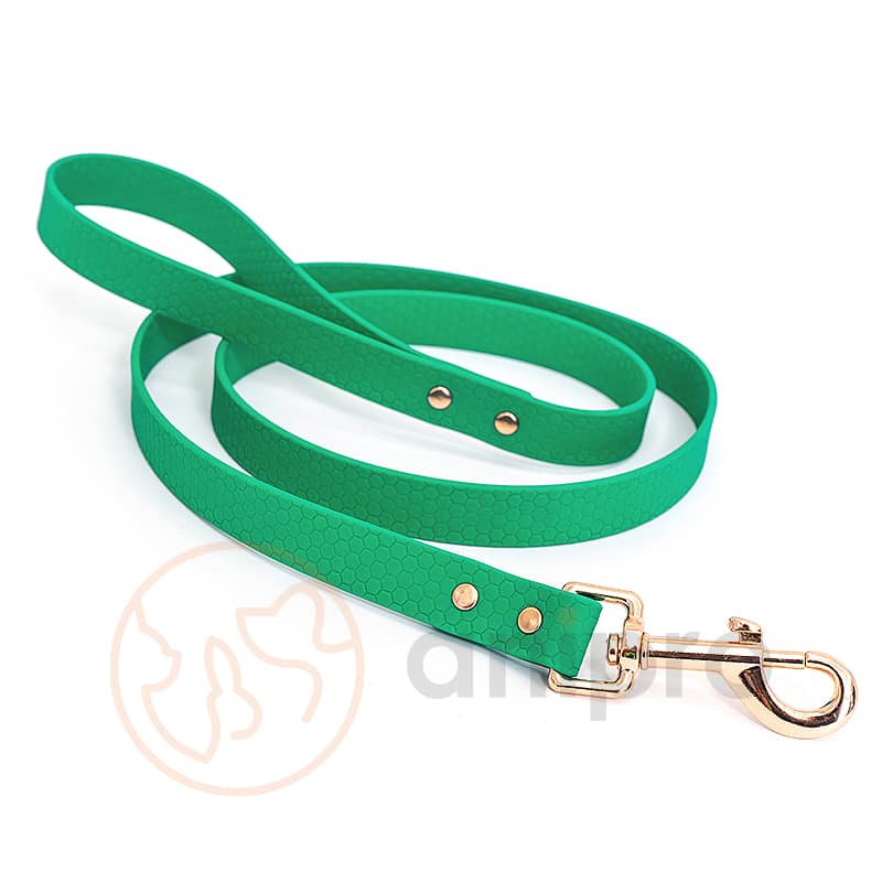 Поводите anipro Hexagon са направени от водоустойчива полипропиленова лента с шарка на пчелна пита (шестоъгълна) от двете страни и с PVC покритие. Тя е много по-издръжливa от обикновената полипропиленова лента. Устойчива е на абразия, 100% водоустойчива, антибактериална и не се разтяга. Обковът се състои от метална висококачествена карабинка с покритие. Продуктът се предлага с ширина 20 мм., дължина 120 см. в следните цветове: · Неоново зелен · Пастелно зелен · Неоново розов · Светло син · Тъмно син · Червен · Черен Цветове на карабинката: · Розово злато · Черно