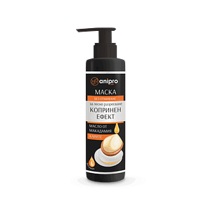anipro Lux маска за куче, копринен ефект е луксозна маска без отмиване за лесно разресване. Супер интензивно подхранва косъма с обогатен комплекс от масло от Макадамия, масло от Карите (Ший) и Витамин Е. Козината е лъскава и подхранена по цялата дължина, мека и лесна за разресване, без заплитане. Кучето се чувства по-комфортно. · Без оцветители · Без силикони · Без парабени · Без съставки от животински произход Употреба: Измийте козината с шампоан. Подсушете с кърпа. Според породата, разнесете 15-30 ml маска равномерно по дължината на влажна козина. Не изплаквайте. Пазете очите и ушите. Опаковка: 200 мл. в бутилка от 100% рециклирана пластмаса с помпа, което прави нанасянето на шампоана лесно и удобно с една ръка, докато с другата държите домашния ви любимец. Създаден с любов и грижа към домашните любимци и околната среда. серията anipro care LUX предлага 3 вида шампоан, балсам и маска без отмиване: · anipro Lux шампоан за куче, дълбокахидратация 200 мл · anipro Lux шампоан за куче, спокойна кожа200 мл · anipro Lux шампоан за куче, копринен ефект200 мл · anipro Lux балсам за куче, копринен ефект200 мл · anipro Lux маска за куче, копринен ефект200 мл Произведени за МиаЗоо от висококачествени натурални съставки. Предназначени само за животни. Състав: Aqua, C12-15 Alkyl Benzoate, Macadamia Ternifolia Seed Oil, Butyrospermum Parkii Butter, Cetrimonium Chloride, Cetyl Alcohol, Stearyl Alcohol, Behenamidopropyl Dimethylamine, Dipalmitoylethyl Hydroxyethylmonium Methosulfate, Cetearyl Alcohol, PEG-7 Glyceryl Cocoate, Polyquaternium-10, Parfum, Lactic Acid, Tocopheryl Acetate, 2-Bromo-2-Nitropropane-1.3 Diol, Coumarin, BHT. РН 6,5-7,5.
