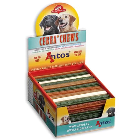 Денталните пръчки на Antos, Холандия, можете да намерите в три различни размера. Предлагат се: дентална пръчка, 12 см дентална пръчка, 18 см дентална пръчка, 24 см