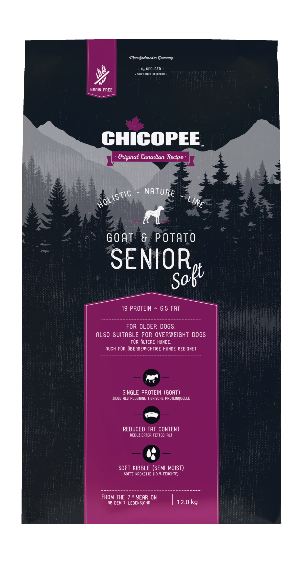 Chicopee Dog HNL Senior Soft+ мека гранула за възрастни кучета, козе и картофи, 12кг