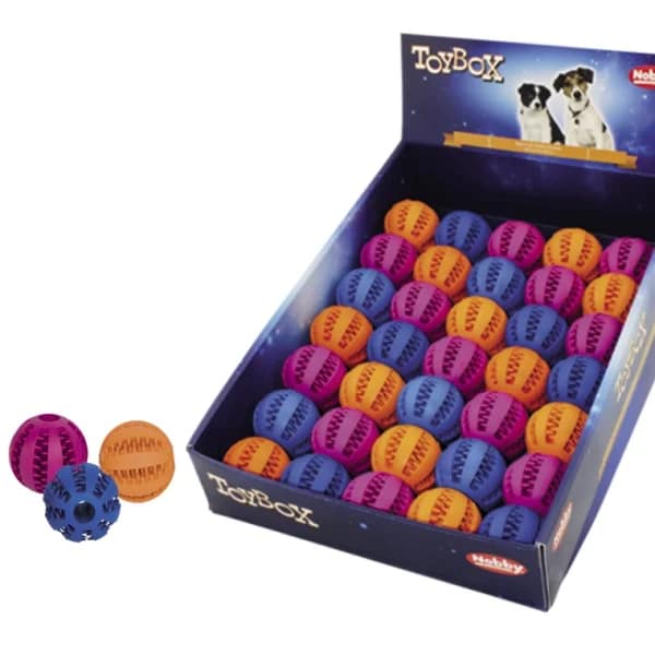 Само като ги погледнете, плътните гумени топки Nobby предават радостта от съвместната игра. Тази много здрава играчка за дъвчене е оборудвана със специални назъбвания, които се грижат особено интензивно за зъбите на вашето куче. Топката се предлага в различни цветове.