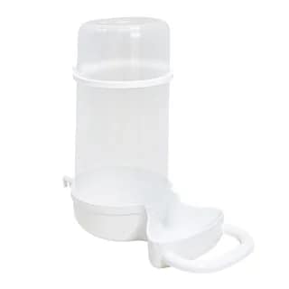 Основното оборудване на клетка за птици включва подходящо място за вода или хранa. Този семеен диспенсър е идеален за това. През прозрачната пластмасова колона можете да видите дали е останало достатъчно вода/храна. Благодарение на изправената конструкция, винаги има подходящо количество, докато пиете/храните.