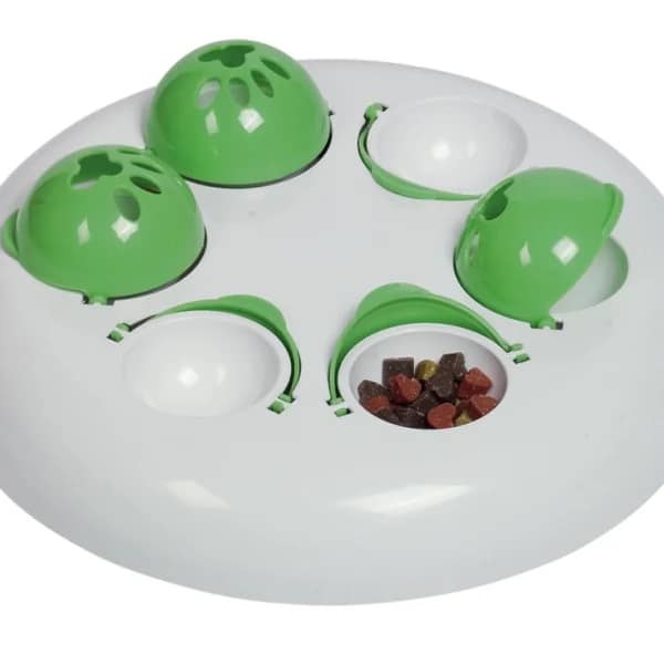 BrainBoard “Flappie” е изработен от здрава пластмаса и е снабден с гумени крачета против плъзгане от долната страна. С муцуната или лапите си вашето куче може да завърти отворите, за да получи наградата си.
