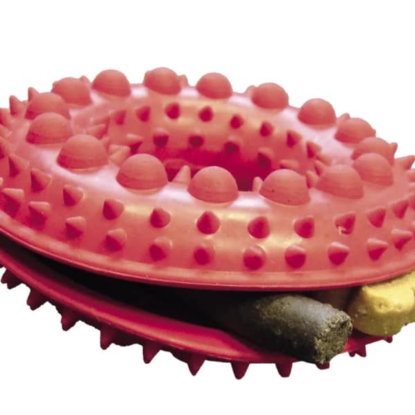 Плътната гума е много здрав материал, който осигурява дългосрочно удоволствие от играта. Този пръстен е гъвкав и се използва за грижа за зъбите и удоволствие от дъвченето. Отворите, които могат да се пълнят с лакомства, насърчават независимата дейност и правят играчката особено вълнуваща за вашето куче. Играчката е с Ø 10,5 см. височина.