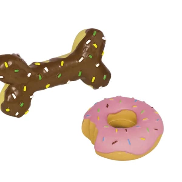 Само като ги погледнете, забавните латексови фигурки на Nobby правят играта заедно забавна. Техният цветен дизайн стимулира въображението и фигурите изненадват със скърцащи звуци, когато ги натиснете. Това е особено популярно сред любопитни, активни кучета. Латексовата играчка „Dessert“ се предлага под формата на понички и кокали. Високи са 10 + 17 см, пълнени и с глас.