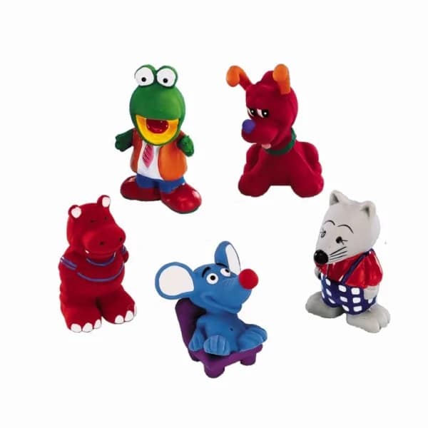 Тази латексова играчка се предлага под формата на пет различни фигурки на животни в различни цветове. Те са високи 8-10 см и са оборудвани с глас.