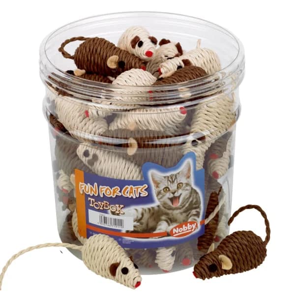 Ловният инстинкт на котката изисква игриво разнообразие: малките мишки от сезал предлагат дълго удоволствие от играта, независимо дали заедно или поотделно. Дрънкалката вътре ще очарова вашата котка!