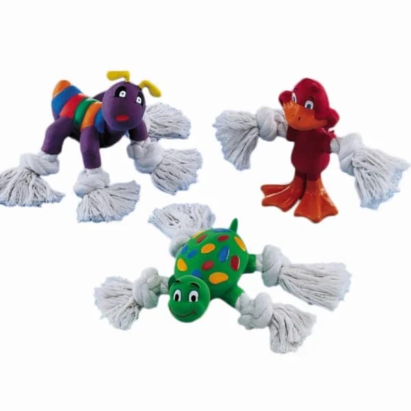 Само като ги погледнете, забавните латексови фигурки на Nobby правят играта заедно забавна. Техният цветен дизайн стимулира въображението и фигурите изненадват със скърцащи звуци, когато ги натиснете. Това е особено популярно сред любопитни, активни кучета. Тази латексова играчка се предлага под формата на фигурки на животни в различни цветове. Те са високи 21 см, и оборудвани с глас и въжета.