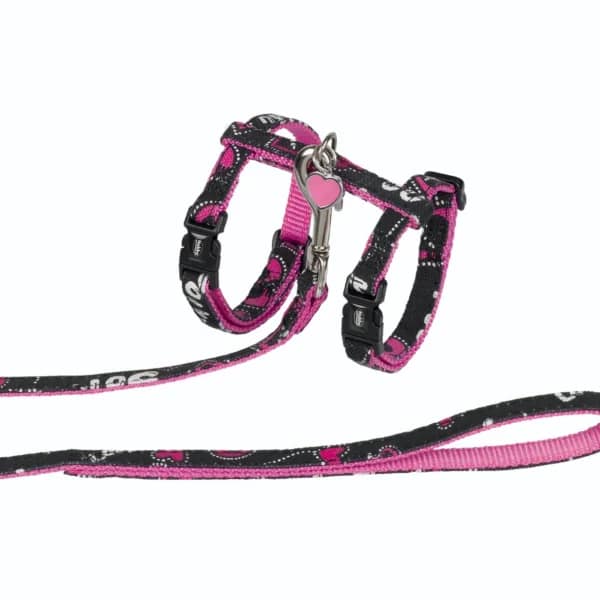 Комплект за котка повод + нагръдник LOVE