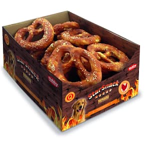 StarSnack Barbecue Treats са чудесно лакомство за всички кучета. Те са направени от естествени суровини и затова са много популярни. Доставят се в запечатана прясна торбичка. Барбекю Starsnack „Chicken Pretzel“ се състои от 41,8% постно пилешко месо, 45,0% телешка кожа и само 3,5% мазнина!