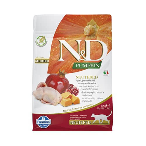 N&D CAT NEUTERED PUMPKIN 300G коте,кастрирани, тиква с пъдпъдък и нар