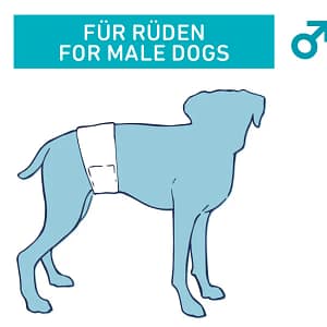 Тези практични еднократни пелени за мъжки кучета са особено полезни при инконтиненция, хронични възпаления на гениталиите или след операции. Те са силно абсорбиращи. Еластичен колан осигурява перфектно прилягане на пелената. С практични лепилни закопчалки размерът също се регулира. Пелената се предлага в различни размери.