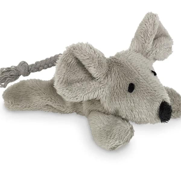Интересни играчки с котешка билка: Тази пращяща плюшена мишка е снабдена със закопчалка с кука и примка отдолу, така че котешката трева да може да се подновява, и е с размер 9 см.
