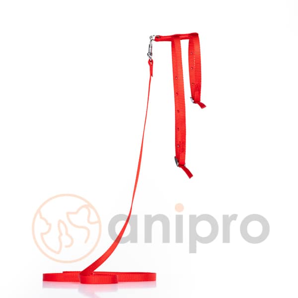 Повод с нагръдник от изк. лента 1.0 см., червен