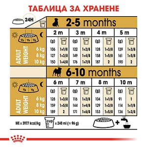 СЪСТАВ: дехидратирани птичи протеини, ориз, царевица, животински мазнини, хидролизирани животински протеини, пулп от цвекло, царевично брашно, пшеничен глутен*, царевичен глутен, рибено масло, минерали, соево масло, фрукто-олигозахариди (0,5%), дрожди (източник на мано-олигозахариди и бета-глюкани), поречово масло, брашно от тагетес, cок от Yucca Schidigera. ДОБАВКИ (на кг.): Хранителни добавки: Витамин A: 29500IU, Витамин D3: 800IU, Витамин E: 600мг, Желязо (3b103): 38мг, Йод (3b201, 3b202): 3,8мг, Мед (3b405, 3b406): 12мг, Манган (3b502, 3b504): 50мг, Цинк (3b603, 3b605, 3b606): 135мг, Селен (3b801, 3b811, 3b812): 0,07мг – Технологични добавки: Клиноптилолит с утаечен произход: 10г – Консерванти – Антиоксиданти. АНАЛИТИЧНИ СЪСТАВКИ: Протеин: 29,0% – Сурови влакнини: 1,5% – Сурови мазнини: 18,0% – Сурова пепел: 7,6% – – EPA/DHA: 0,3%. УКАЗАНИЯ ЗА ХРАНЕНЕ: виж таблицата. За партидния номер, идентификационния номер на фабриката: вижте на опаковката. Най-добър преди: вижте на опаковката. Да се съхранява на сухо и прохладно място.