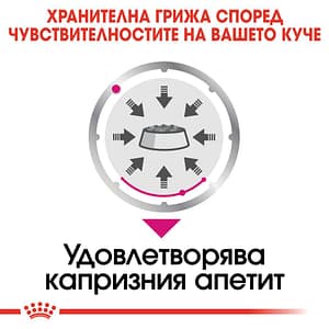 Пълноценна храна за кучета – за кучета в зряла възраст над 10 месеца – кучета с капризен апетит.