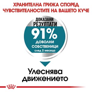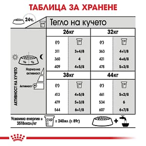 СЪСТАВ: царевица, дехидратиран птичи протеин, пшеница, животински мазнини, растителни влакнини, изолат от растителен протеин*, царевично брашно, ориз, хидролизирани животински протеини, царевичен глутен, пулп от цвекло, рибено масло, мая и части от нея, минерали, соево масло, хидролизиран колаген (0,84%), екстракт от тагетес (източник на лутеин), хидролизиран хрущял (източник на хондроитин). ДОБАВКИ (на кг.): Хранителни добавки: Витамин A: 16500IU, Витамин D3: 1000IU, E1 (Желязо): 42мг, E2 (Йод): 4,2мг, E4 (Мед): 13мг, E5 (Манган): 55мг, E6 (Цинк): 141мг, E8 (Селен): 0,08мг – Технологични добавки: Клиноптилолит с утаечен произход: 10г – Сензорни добавки: Екстракт от зелен чай (източник на полифеноли): 2,5г – Консерванти – Антиоксиданти. АНАЛИТИЧНИ СЪСТАВКИ: Протеин: 26,0% – Сурови мазнини: 15,0% – Сурова пепел: 6,3% – Сурови влакнини: 6,3% УКАЗАНИЯ ЗА ХРАНЕНЕ: виж таблицата. За партидния номер, регистрационния номер на фабриката: вижте на опаковката. Най-добър: вижте на опаковката. Да се съхранява на сухо и прохладно място.