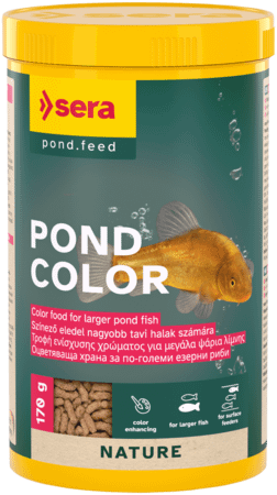 Оцветяваща храна за по-големи езерни риби плаващи, лесно смилаеми пръчици с 4% богато на каротеноиди брашно от крил за оптимално цветово развитие и чистота на цветовете балансирана формула с изобилие от омега мастни киселини, витамини, микроелементи и минерали подходящ за целогодишно пълноценно хранене Pond Color е оцветяваща храна за езерни риби, направена от нежно произведени пръчици без оцветители и консерванти.Ценни съставки като брашно от крил (4%), което е много богато на естествени каротеноиди, спомагат за оптимално развитие на цвета и чистота на цветовете. Балансираната, лесно смилаема рецепта с изобилие от омега мастни киселини, витамини, микроелементи и минерали подпомага здравословното развитие, устойчивост и жизненост.Оцветяващата храна е подходяща за целогодишно пълноценно хранене. Плаващите пръчици запазват формата си дълго време и не замърсяват водата. Натурална храна за езерни риби Независимо дали става въпрос за златни рибки, горчивки или слънчеви риби: гамата храни за езера sera осигурява правилната храна за всички езерни риби. Според размера и възрастта на животното, хранителните изисквания и желаната функция (напр. подобряване на цвета) с подходящ състав и подходяща форма (люспи, пръчици, пелети). Всички видове храни за езерца принадлежат към гамата „Nature“ и не съдържат оцветители и консерванти. Цветовете на различните видове храни се дължат на естествените съставки. Разнообразната диета с натурални съставки е най-добрата защита срещу дефицити и поддържа здравето и жизнеността на рибите. Всички видове храни Nature съдържат естествени съставки като спирулина, крил или устойчиво брашно от насекоми от ларви на черна муха (Hermetia). Пълноценна храна за всички декоративни студеноводни риби Инструкция за храненеДавайте веднъж или два пъти дневно през цялата година, но само по толкова колкото животните могат да изядат за кратко време. Съдържание: пшенично брашно, царевично нишесте, пшеничен глутен, рибно брашно, брашно от насекоми (Hermetia illucens) (4%), брашно от крил (4%), бирена мая, рибно масло, пшенични зародиши, манан-олигозахариди (0.4%), брашно от месо от зеленоуста мида, водорасли Haematococcus, чесън. Аналитичен състав: суров протеин 40.5%, сурови мазнини 6.5%, сурови влакнини 2.0%, влага 6.0%, сурова пепел 6.0%. Добавени Bитамините и провитамините: 3a672a/Вит. А 30000IU/кг, 3a671/Вит. D3 1500IU/кг, 3a700/Вит. E 60мг/кг, 3a820/Вит. B1 30мг/кг, 3a825i/Vit. B2 90мг/кг, 3a312/стаб. Вит. C 550мг/кг.