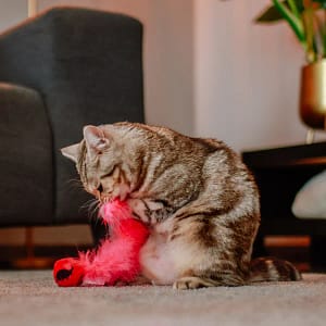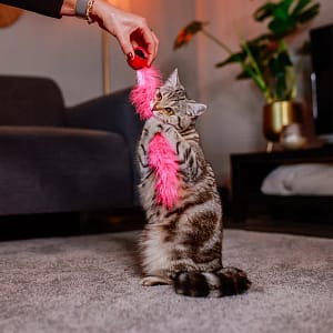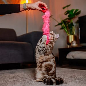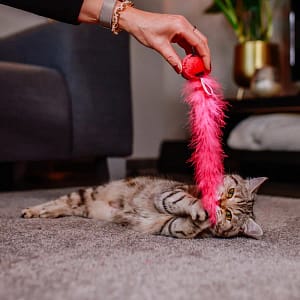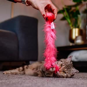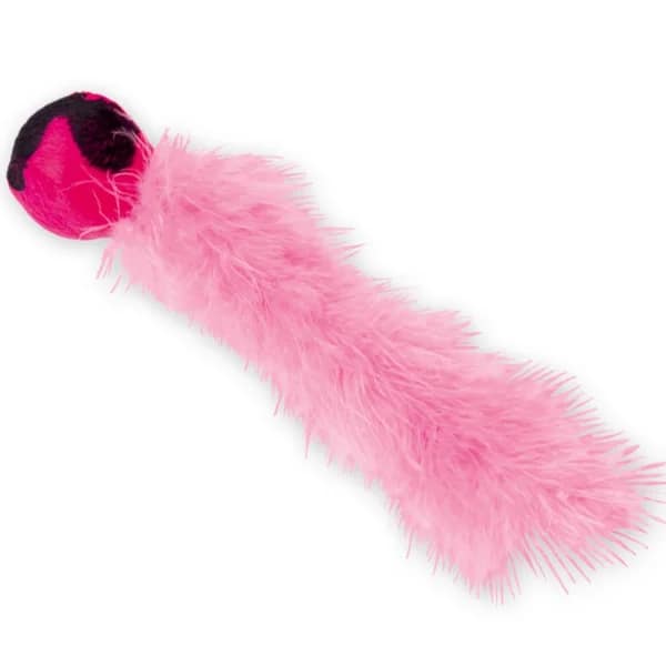 Ловният инстинкт на котката изисква игриво разнообразие: Плюшената топка обслужва няколко сетива на вашия взискателен тигър. Използваната привличаща билка и финото чувство за допир, красивите пера и вградената дрънкалка ще очароват вашата котка.
