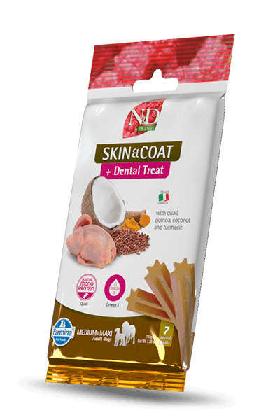 TREAT ND QUINOA DOG SKIN COAT QUAIL 100g ADULT MED/MAX – лакомство