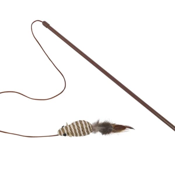 Интересни играчки с котешка билка: Тази въдица е оборудвана със сизалена дрънкалка и пера. Щеката е с дължина 45 см, каишката 75 см, а топката е с размер 5 см.