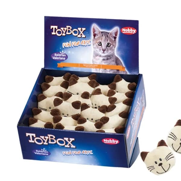 Интересни играчки за вашата котка: Този дисплей съдържа малки меки плюшени възглавнички във формата на котка.