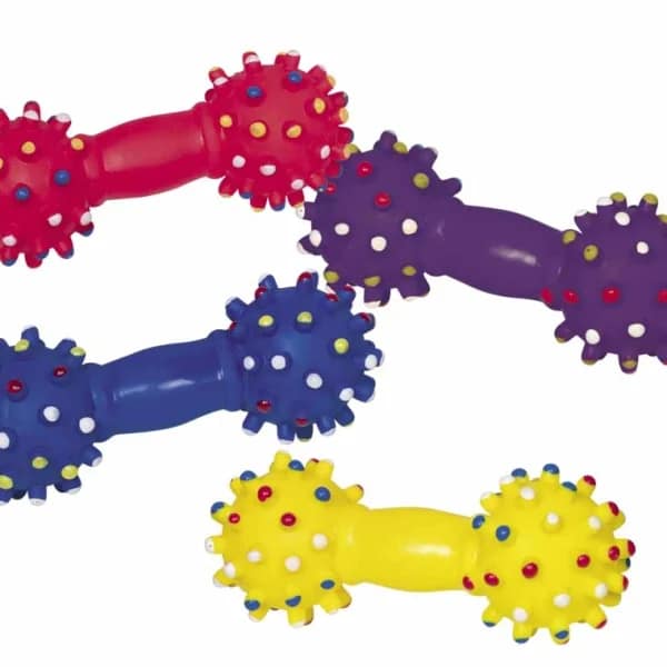 Виниловата играчка се предлага под формата на дъмбел с пищялка и в четири различни цвята. Размер: 16 см